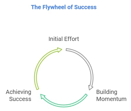 Success doesn’t happen overnight. The Flywheel Concept teaches us that consistent effort leads to unstoppable momentum. Think of it as pushing a heavy wheel - at first, it’s tough, but with persistence, it gains speed and eventually moves effortlessly.