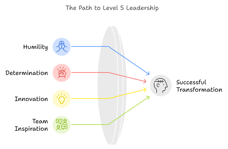 Collins introduces the idea of Level 5 Leadership: leaders who are humble but fiercely determined. It’s about putting the mission before personal glory and staying committed to the goal, no matter what.