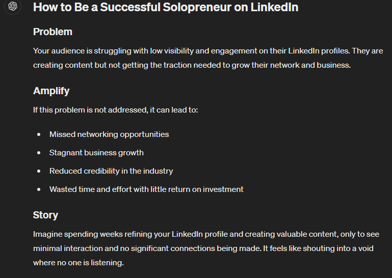 Example: "Your audience is struggling with low engagement on their LinkedIn posts."