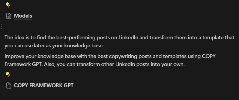 Use Copy Framework GPT to update your Model base the best copywriting framework from LinkedIn.